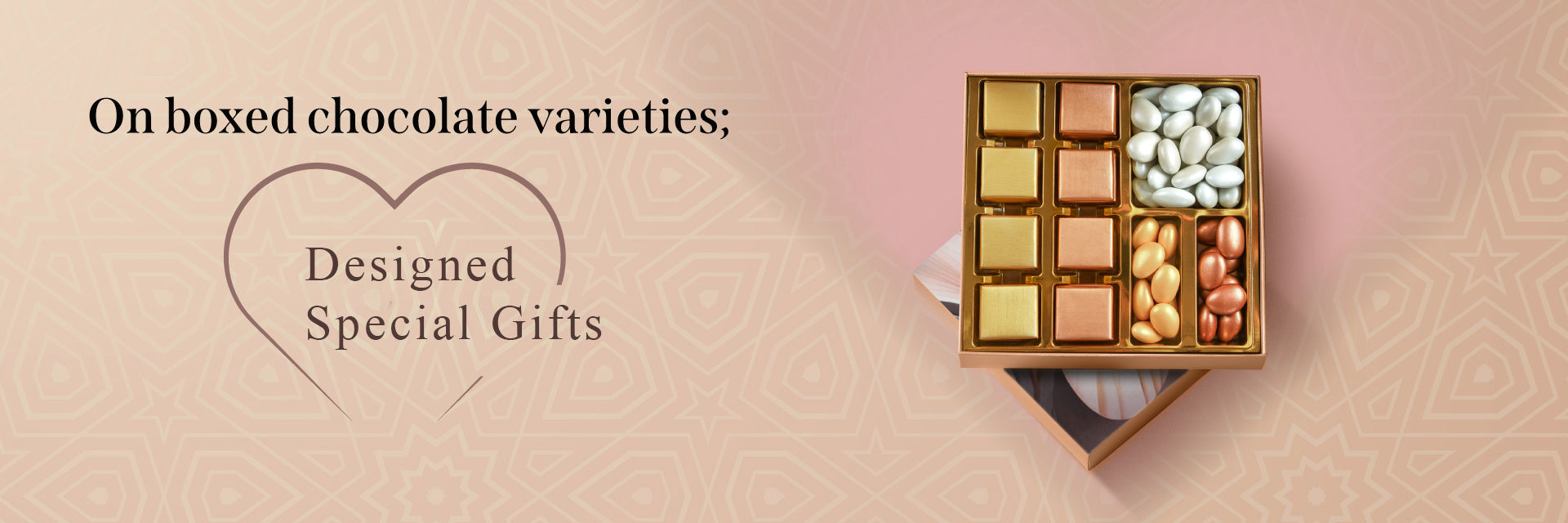 The richest flavour to be experienced with meticulously selected ingredients. Special Designed Chocolate boxes for your loved ones...
